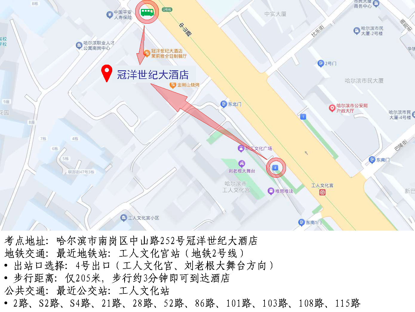 地址:黑龍江省哈爾濱市南崗區(qū)中山路252號(酒店附近交通詳見附件)。