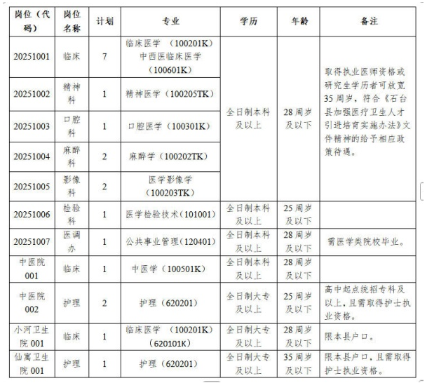 2025年度石臺縣公立醫(yī)院工作人員招聘公告(第二批)